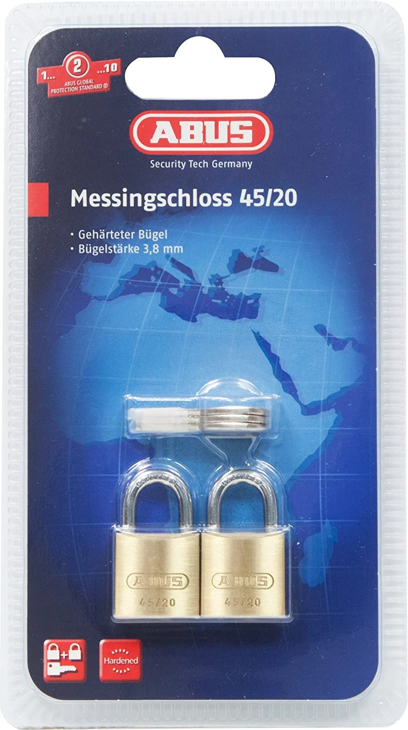 Der Schlosskörper besteht aus Messing, der Bügel aus gehärtetem Stahl. Hinter der Serie ABUS 45 verbirgt sich eine umfangreiche Hangschloss-Serie in Größen von 15 bis 60 mm.