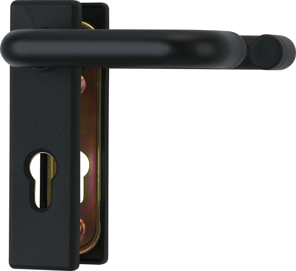 Ist Ihre Tür unprofessionell gesichert, haben Einbrecher leichtes Spiel. Wollen Sie Ihre Ein- und Ausgänge gegen unbefugtes Eindringen schützen, benötigen Sie einen robusten Schutzbeschlag aus hochwertigen Materialien. Dieses Produkt ist aus Stahl und verschleißarmem Kunststoff gefertigt. Durch vormontierte Stahlnocken ist es schnell montiert und hält einer Zugbelastung von 2,5 Tonnen mühelos stand. Es ist speziell für Feuerschutztüren konzipiert. Der Stahlkern im Inneren stellt die Bedienung im Notfall sicher. Alternativ ist der Schutzbeschlag auch als Drücker/Drücker-Garnitur erhältlich.
