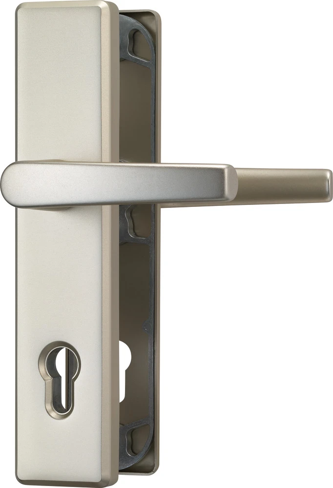 Haustüren müssen sicher sein. So viel steht fest. Doch häufig sind sie es nicht – und Einbrecher haben leichtes Spiel. Der Grund: hervorstehende Schließzylinder, die gewaltsam entfernt werden können. Setzen Sie deshalb auf einen effektiven Schutzbeschlag. Dieser Schutzbeschlag eignet sich für Haustüren mit einer Türstärke von 52 bis 67 Millimetern. Stabile Nocken und die Montage mittels Innenverschraubung schützen effektiv gegen Abreißen. Metallunterschild und Leichtmetall-Deckschild sind hochwertig und robust. Der Beschlag ist universell einsetzbar, egal ob für links- oder rechtsschließende Türen.