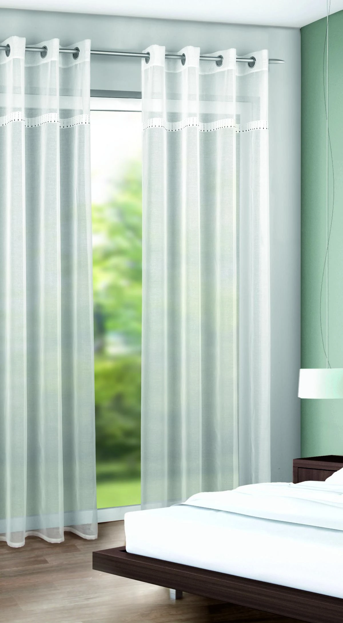 Unifarbener Ösenschal mit Strass besetzter Bordüre aus 100 % Polyester.