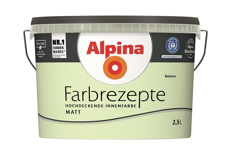 Alpina Farbrezepte Balance steht für Natur, Ruhe und Ausgeglichenheit. Das helle Grün wirkt regenerierend und erholsam und ist damit ideal fürs Schlafzimmer geeignet. Die dezente Farbe brilliert an der Wand als Solokünstler, lässt sich aber auch gern stimmig kombinieren.