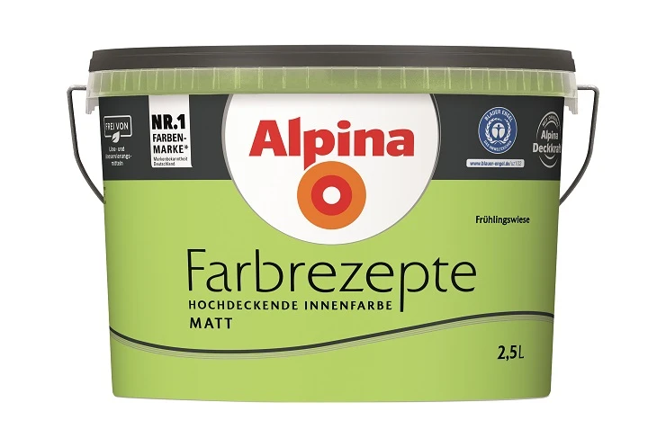 Alpina Farbrezepte Frühlingswiese ist ein junges, intensives Gelbgrün voller Frische und Vitalität. Mit der Kraft des Anfangs und Neubeginns erzeugt es eine inspirierende Atmosphäre im Raum.