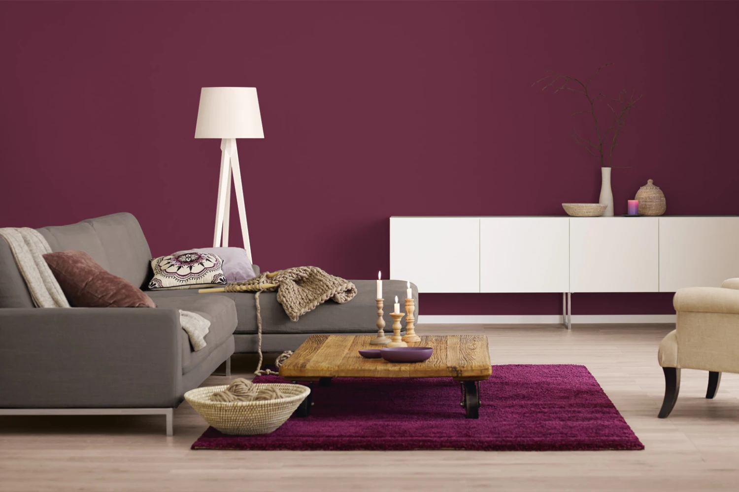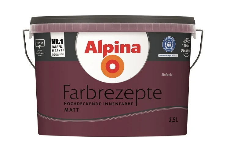 Alpina Farbrezepte Sinfonie ist ein intensives Purpur, das vor allem als Akzentton glänzt. Als solcher ergibt er eine besonders gelungene Komposition mit sanft verhüllten Farben.