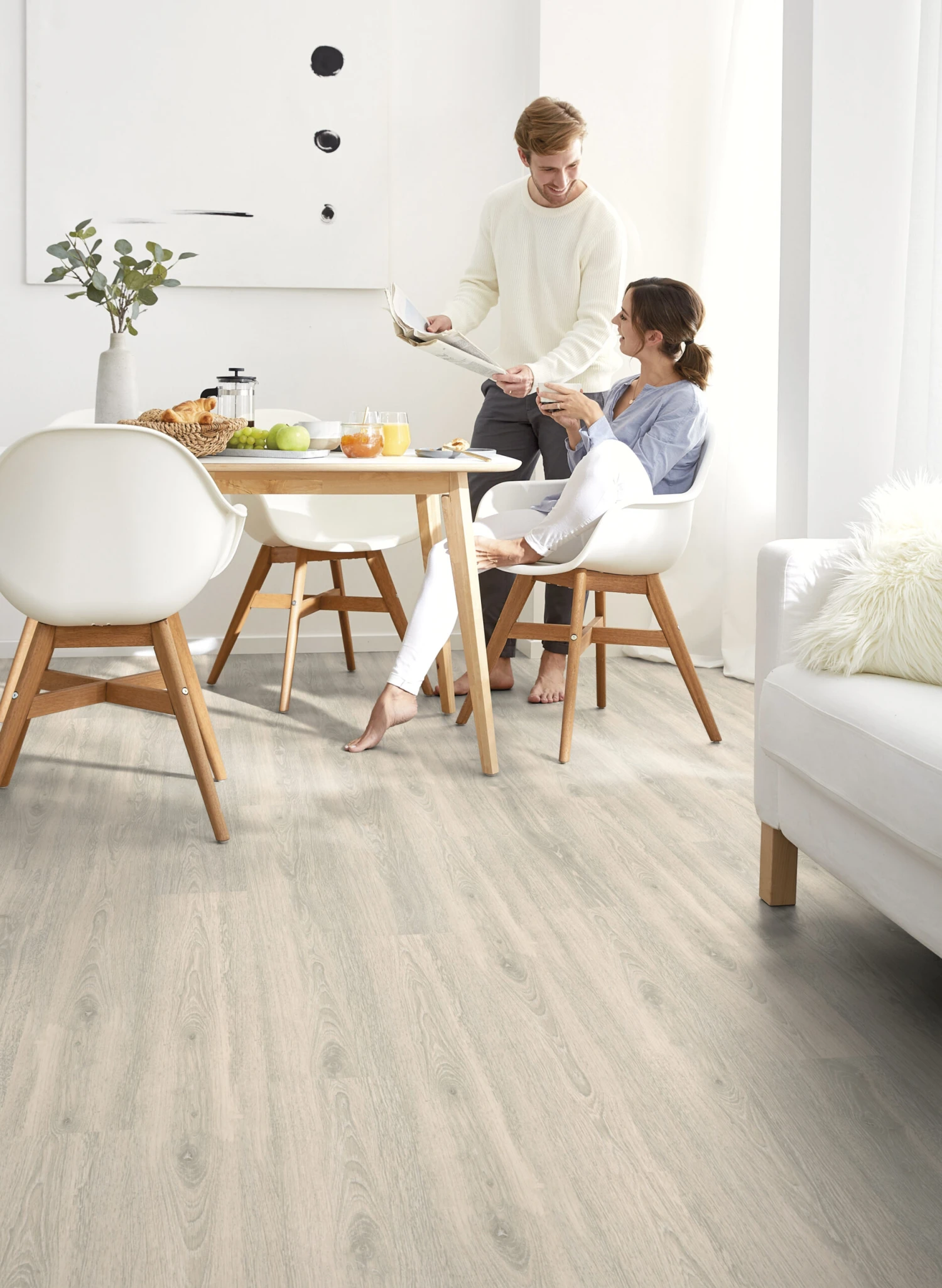 Der Decolife Vinylboden ist ein Bodenbelag, der innovatives Oberflächendesign mit der Behaglichkeit und Natürlichkeit von Kork verbindet. Seine stabile, schmutzabweisende Vinyloberfläche ist äußerst strapazierfähig. Direkt unter der Vinylschicht liegt eine hochverdichtete Korkschicht, in der die gesundheitsfördernden Vorzüge des Produktes begründet sind: federnd und gelenkschonend. Die zweite Korkschicht reduziert Raum- und Trittschall. Decolife lässt sich schneller und einfacher verlegen als viele andere Systeme. Es wird weder spezielles Werkzeug noch Leim benötigt. Einfach ineinander schieben, einrasten lassen, fertig.