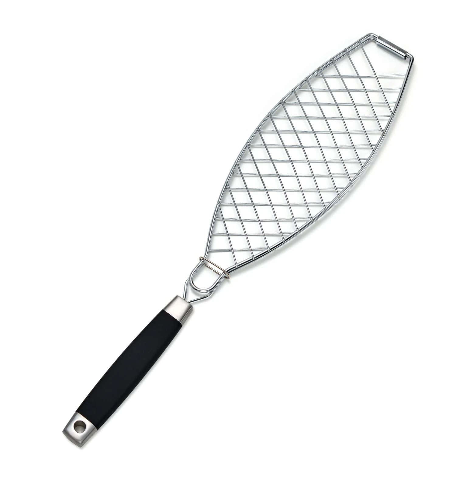 Grillbräter für Fisch aus Edelstahl mit Markenbranding.