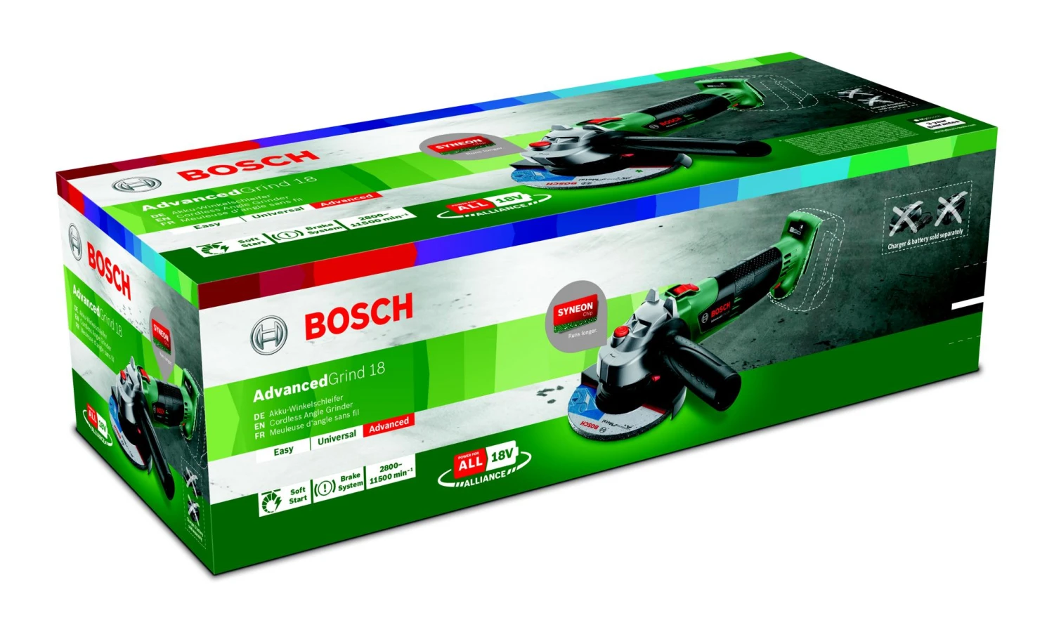 Der Winkelschleifer AdvancedGrind 18 erledigt mit dem Vorteil kabelloser Freiheit zahlreiche DIY-Arbeiten an Metall und Stein. Der leistungsstarke Motor und der 18V-Akku sind in der Lage, verschiedenste Arbeiten zu bewältigen. Mit der elektronischen Drehzahlvorwahl kann die Werkzeugdrehzahl perfekt an die jeweiligen Material- und Projektanforderungen angepasst werden. Dank Sanftanlauf, Bremsfunktion und schnell einstellbarer Schutzhaube ist ein reibungsloser Werkzeugbetrieb gewährleistet. Er eignet sich zum Schleifen, Trennen, Bürsten und Polieren von Metall, Stein, Betonsteinen und Fliesen. Der einfache, werkzeuglose Scheibenwechsel dauert weniger als 12 Sekunden. Das Gerät ist Teil der POWER FOR ALL ALLIANCE. Ein einziger Akku kann eine Vielzahl an Geräten verschiedenster Marken betreiben.
