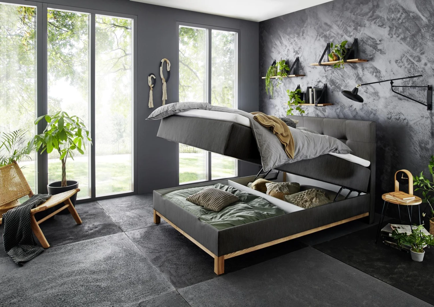 - Inkl. 1 frontal klappbaren Bettkasten