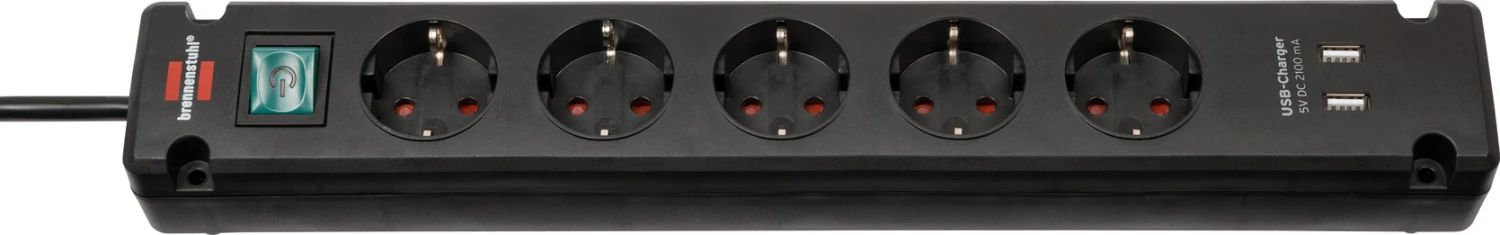 Bremounta Steckdosenleiste mit USB-Ladefunktion 5fach schwarz 3m H05VV-F 3G1,5 mit Schalter