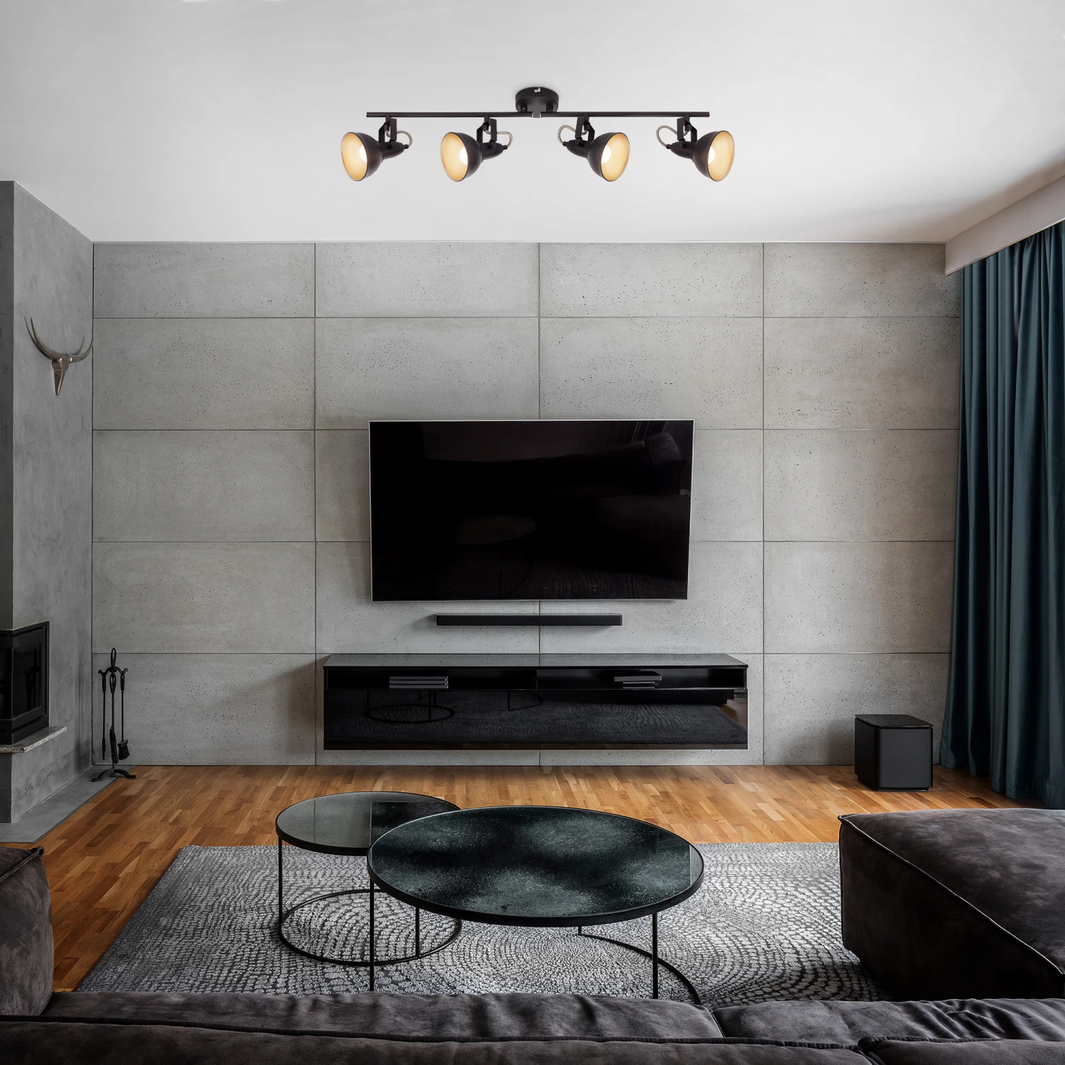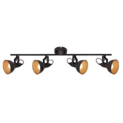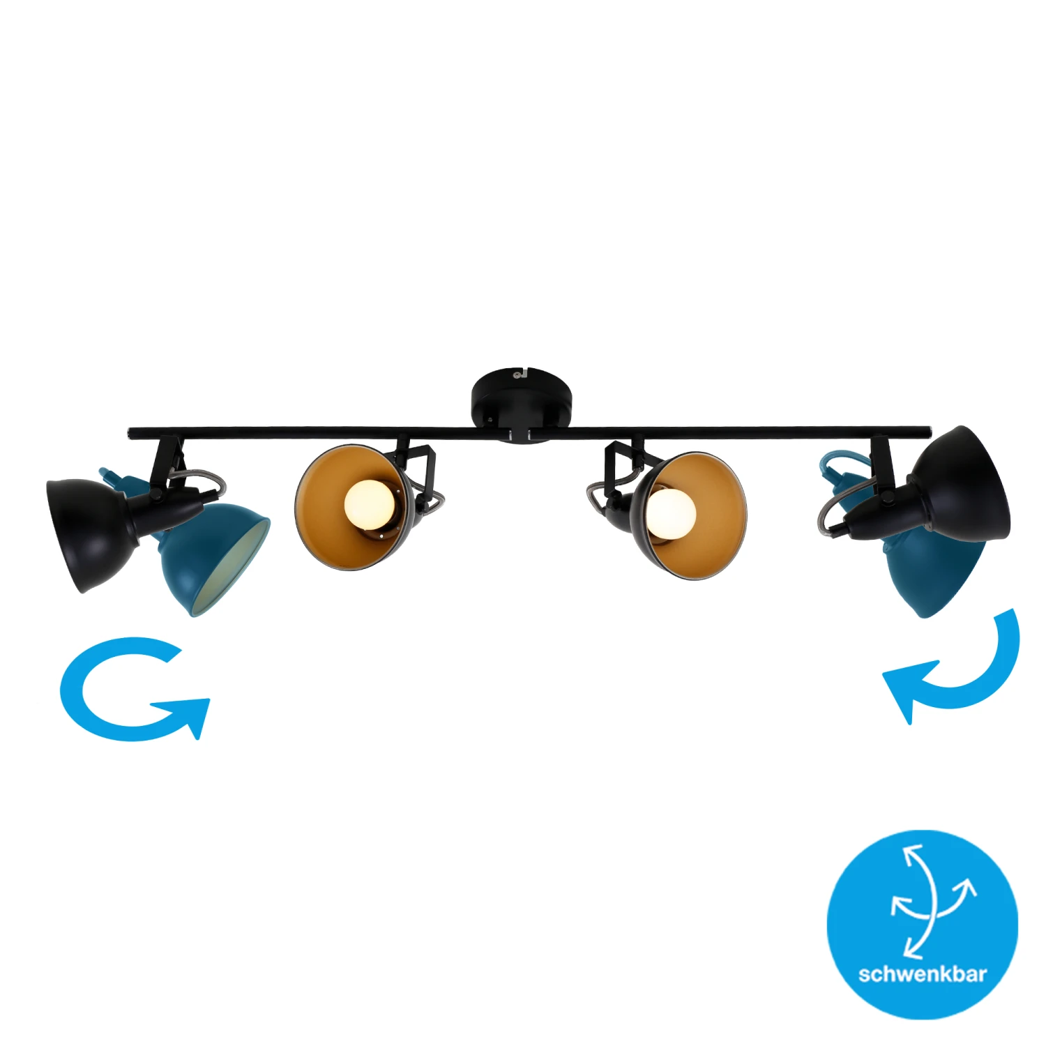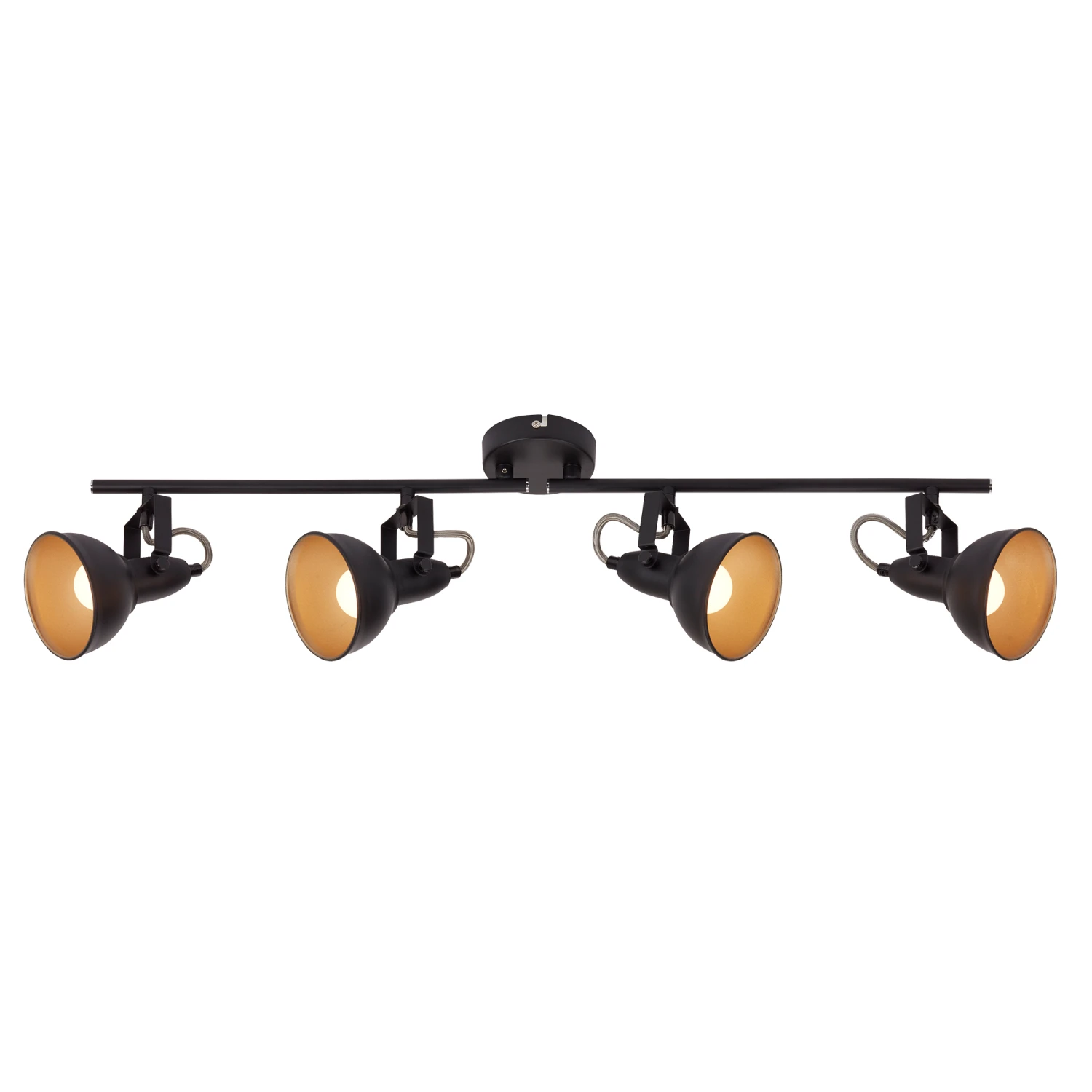 Retro Deckenleuchte 4-flammig Metall / schwarz-gold exkl. 4 x E14 max. 40W ohne Leuchtmittel, Strahler schwenk- und drehbar, IP20, 790x190mm (LxH), Ø105mm (Kopf)
