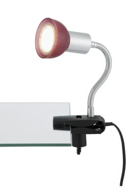 LED Klemmleuchte, 1-flammig „LEDO“ Metall-Glas / titanfarbig-rot, inkl. 1 x LED/GU10 3W, 250lm, 3.000K, Lebensdauer 25.000 h, Ra>= 80 flexibler Arm, inkl. Kabelschalter, IP20 / Schutzklasse II, 90x61x340x220mm (LxBxHxA)
