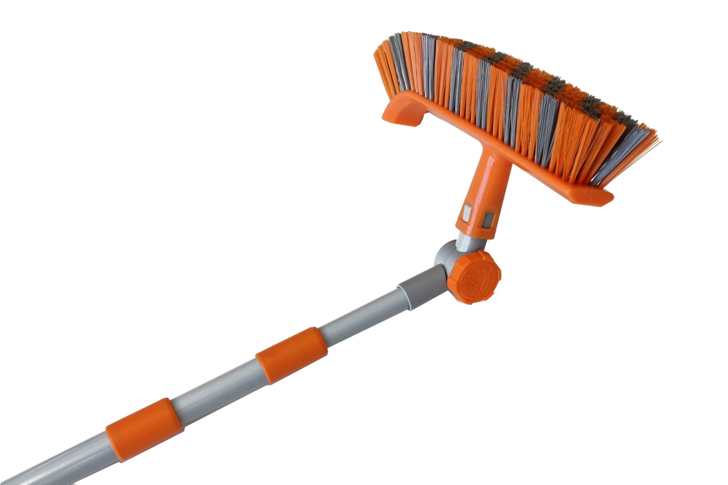 kräftige Kunstborsten zweifarbig, Winkeladapter frei einstellbar, große Stellschraube, Teleskopstiel bis ca. 360 cm