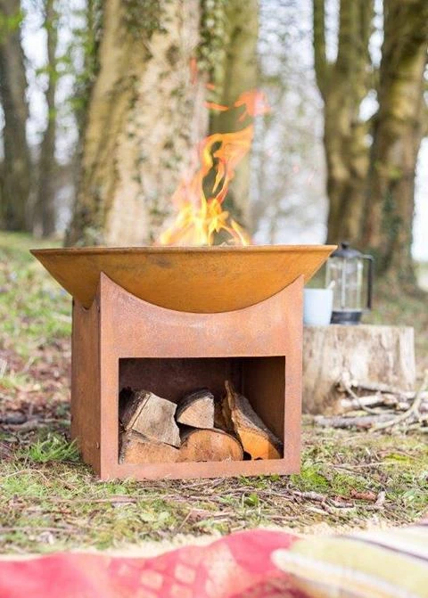 Die moderne Form und die stabile Verarbeitung machen diese Feuerschale zum Lieblingsstück in Ihrem Garten. Durch die beiden seitlich angebrachten Henkel gestaltet sich ein Platzwechsel sehr einfach und die Standfestigkeit wird dank der drei Beine gewährleistet. Für ein wärmespendes Feuer können Sie Holz, Holzkohle oder Briketts verwenden. Durch das optional erhältliche Zubehör, wie Grillrost, Grillring etc. können Sie die Feuerstelle ganz einfach auch als Grill nutzen. Lieferbar in verschiedenen Größen.