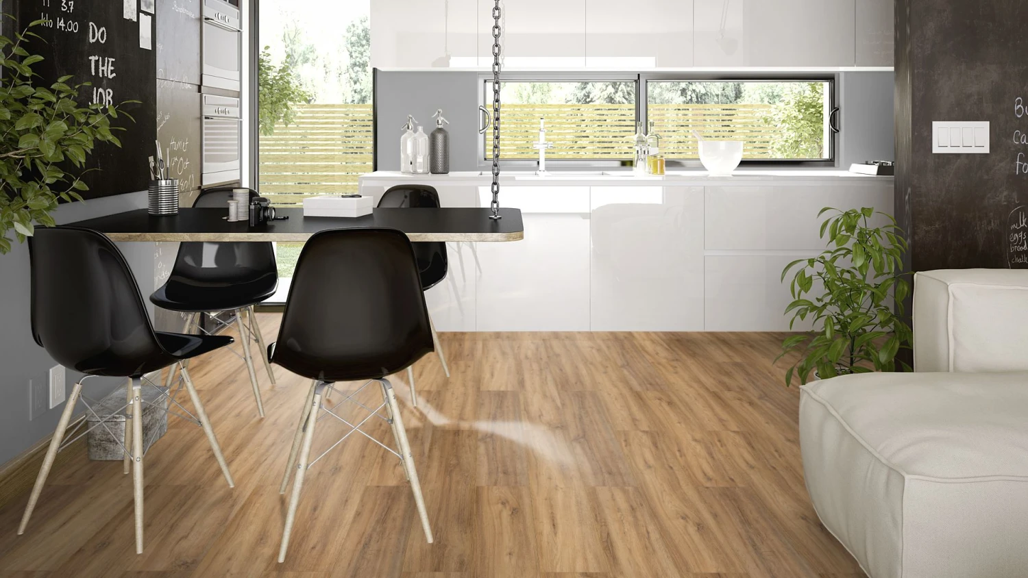 Megaloc Aquaprotect ist der neue wasserabweisende Laminatboden. Dank spezieller Kantenhydrophobierung kann der Bodenbelag bis zu 24 Stunden stehendem Wasser schadlos widerstehen. Aufgrund der wasserabweisenden Oberfläche ist er der perfekte Bodenbelag für stark beanspruchte Wohnbereiche (z.B. Küche, Diele, Flure), sowie für leicht beanspruchte Gewerbe- und Objektbereiche. Feuchtraumgeeignet – einfach, schnell und sicher verlegt. · Länge: 1285 mm · Breite: 192 mm · Stärke: 8 mm · Oberfläche: Struktur · Dekor: Oak natural · Fase: rundum 4V · Trägermaterial: HDF · Nutzungsklasse: 32 / AC 4 · für Wohnbereiche mit intensiver Nutzung und gewerbliche Bereiche mit normaler Nutzung geeignet · Warmwasser-Fußbodenheizung geeignet · Verlegeart: Schnellverlegesystem Megaloc Aquaprotect (Push-Down) · Inhalt: 1 Pack = 1,973 m² · wasserresistent, feuchtraumgeeignet · Blauer Engel · ECO zertifiziert · PEFC zertifiziert