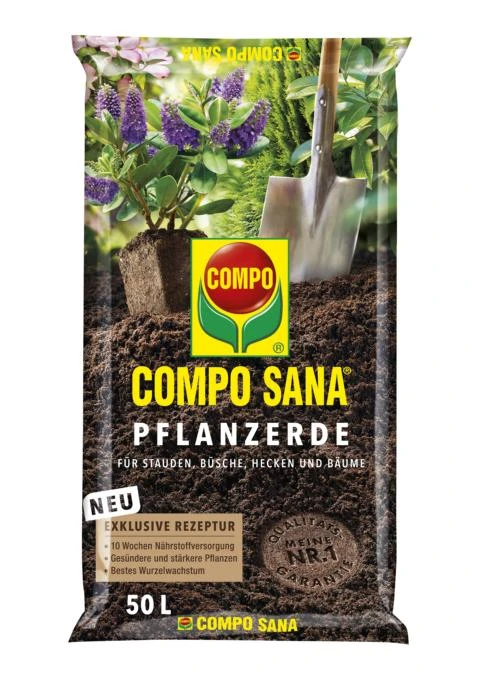 Hochwertige Spezialerde zur Pflanzung von Stauden, Gehölzen und Hecken. Das auf die Bedürfnisse der Pflanzen abgestimmte Dünger-Depot wirkt sofort und gewährleistet eine bis zu 10 Wochen optimale Nährstoffversorgung. Für bestes Wurzelwachstum und eine gesunde Pflanzenentwicklung sorgen COMPO PLUS® Gärtnerhumus und COMPO Wurzelaktivator.