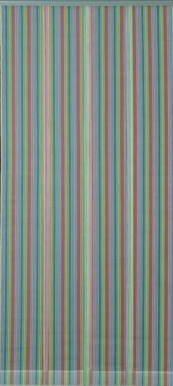 Transparenter Vorhang mit vier Polyester-Gitter-bahnen, grau mit bunten Streifen, 25 cm breit, Maximal-Größe: 90 x 200 cm. Mit Kunststoffleiste.
