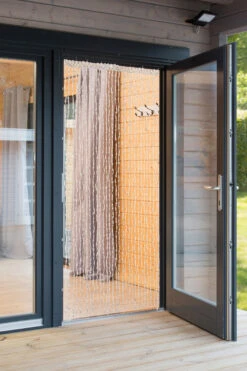 Vorhang aus Papier-Zöpfen mit Kleeblatt-Flechtung, natur-weiß, handgearbeitet, ca. 90 x 200 cm, mit Kopfflechung inkl. Aufhängeschlaufe.