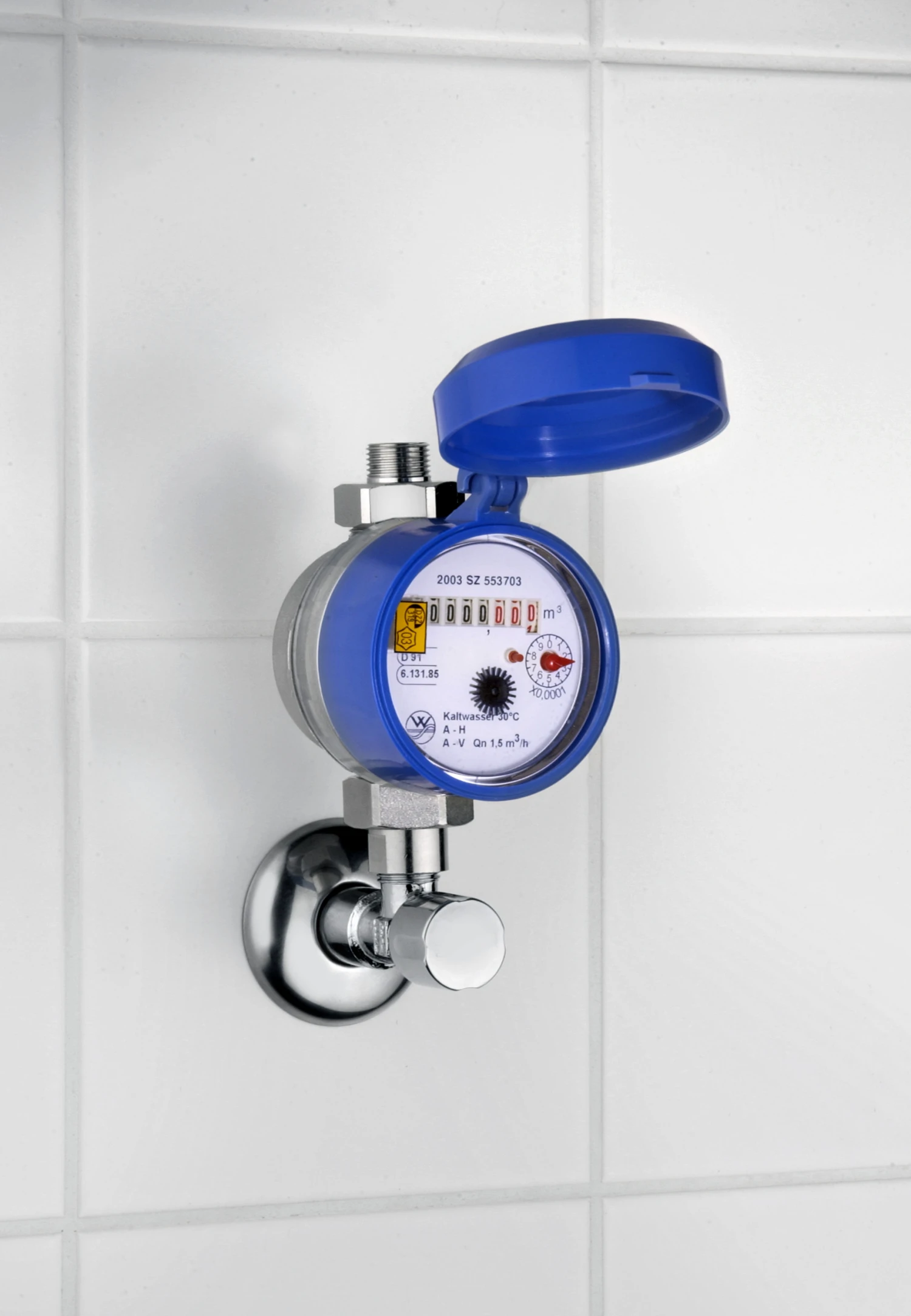 Anschluss-Verschraubung zur Eckventimontage des Wasserzählers, WZA12, Einerseits 3/8″ AG und 3/4″ IG, Andererseits 3/8″ IG x 3/4″ IG, mit Dichtung, 3/8″ IG-AG, 3/4″ IG