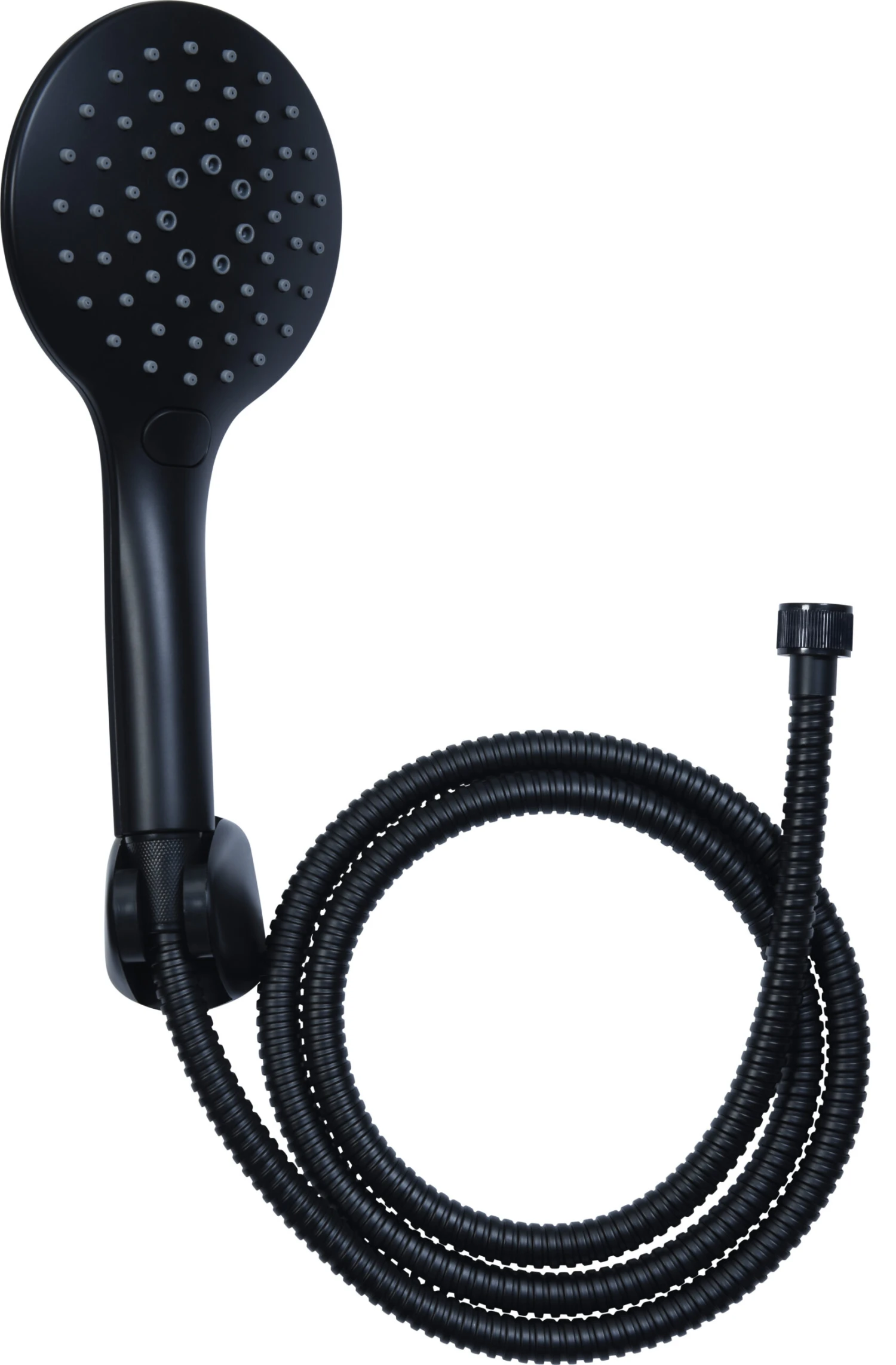 Brause Set NOIR Handbrause Material: ABS-Kunststoff, 3 Strahlarten, Normalstrahl, Sprühstrahl, Normal- & Sprühstrahl, Umstellung durch Drucktaste, Kopfdurchmesser: 125mm, Mit Antikalk-Funktion, ½ Anschlussgewinde, Für Durchlauferhitzer geeignet, Farbe: Schwarz, Edelstahl- Brauseschlauch Farbe: Schwarz, 1/2 Überwurfmutter x 1/2 Konus, Länge: 150cm, Innendurchmesser: 7,3mm, Verdrehungssicher, Platzdruck 5ba /50°C, Zugfestigkeit: 50kg
