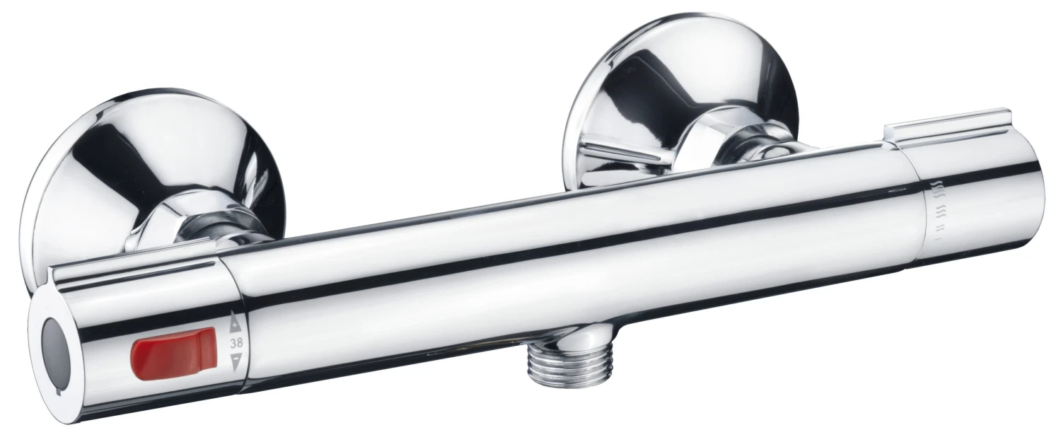 Brause Thermostat-Armatur PARLA Hergestellt aus Messing gemäß aktueller DIN, Mit COOL TOUCH Technologie, Brauseabgang 1/2″, Temperaturwahlgriff mit Sicherheitssperre bei 38°C, Leicht auswechselbares Thermoelement, Inkl. allem Montagezubehör, Verchromt, COOL-TOUCH: Diese Technologie vermindert die Gefahr, sich beim Duschen an einer heißen Chrom-Oberfläche zu verbrennen, Die Oberfläche der Armatur bleibt in einer angenehmen Temperatur, Funktion: Durch eine neuartige Führung der inneren Wasserwege kommt das heiße Wasser nicht mehr mit der äußeren Hülle der Armatur in Berührung, Die Chrom-Oberfläche kann sich somit nicht aufheizen