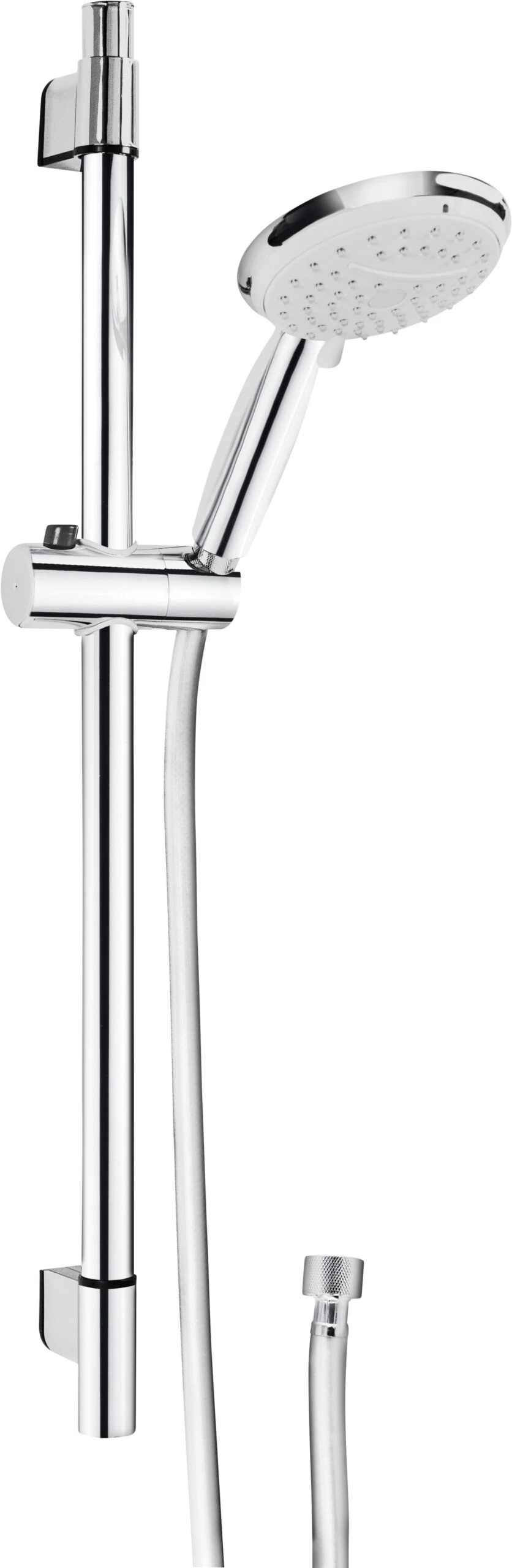 Brausegarnitur ARDEA Handbrause ARDEA, 2 Strahlarten, Normalstrahl, Schwallstrahl, Kopfdurchmesser: 119,5 mm, Mit Antikalk-Funktion, ½ Anschlussgewinde, Für Durchlauferhitzer geeignet, Mit Wasserspareinsatz und separater Dichtung, Farbe: verchromt, Kunststoff Brauseschlauch, Farbe: silber, ½ Überwurfmutter x ½ Konus, Länge: 150 cm, Innendurchmesser: 8,5 mm, Verdrehungssicher, Platzdruck 8 bar / 50 °C, Zugfestigkeit: 50 kg, Brausewandstange CERVIA, Länge: 65cm, Rohrdurchmesser: 24,5 mm, Verstellbarer Wandhalter, Farbe: chrom, Mit Befestigung, Mit Drucktastenschieber (TECB3455)