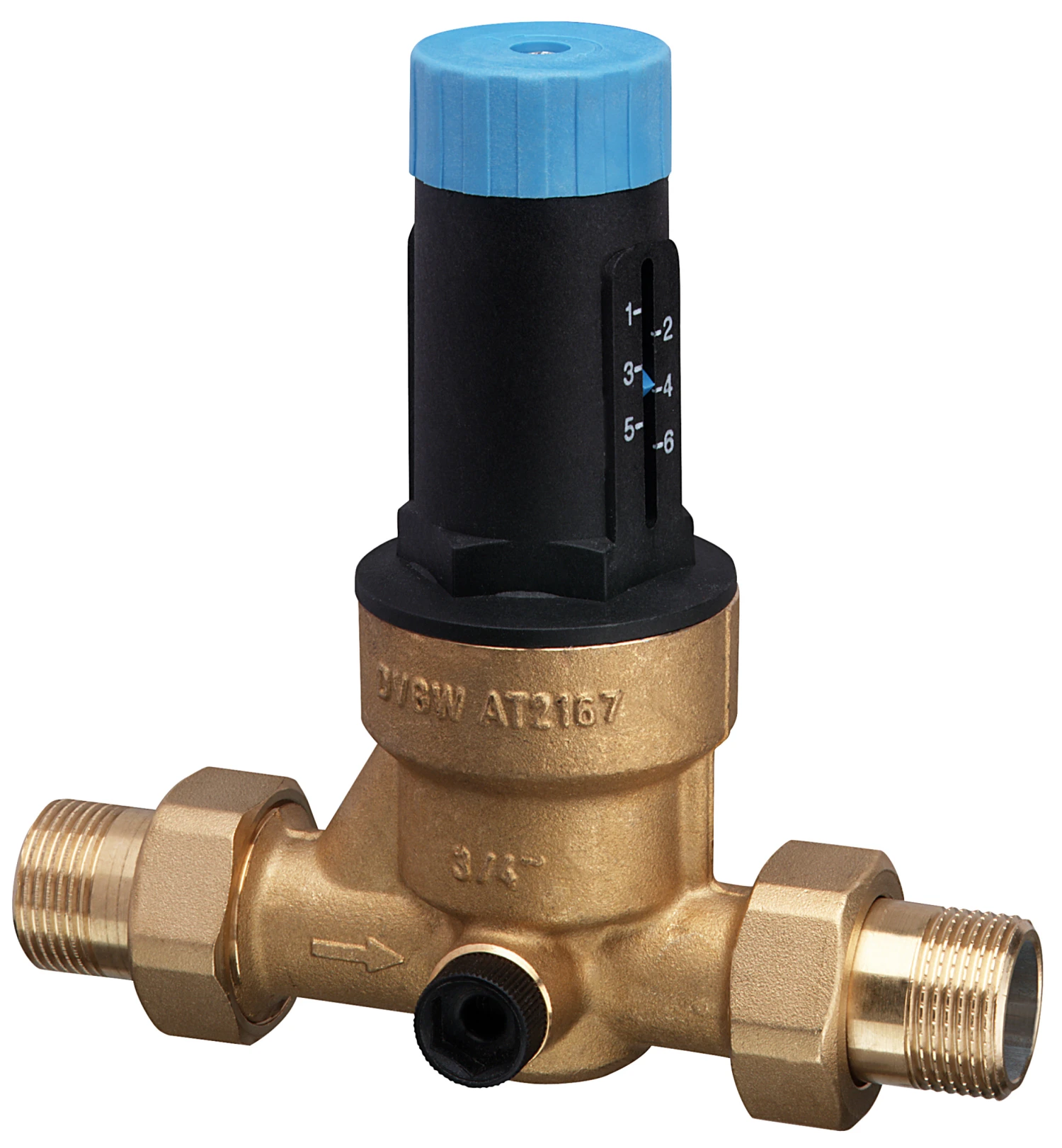 Druckminderer Körper und Verschraubung aus Messing, Federhaube aus schlagfestem Kunststoff, für Wassertemperatur bis max. + 70°C, Eingangsdruck: max. 25 bar, (DVGW geprüft 16 bar), Ausgangsdruck: 1,5-6 bar einstellbar, Medien: Wasser, neutrale Flüssigkeiten, Druckluft, Stickstoff, inkl. Montage und Bedienungsanleitung, Einsatz: Wenn Versorgungsdruck über dem, zulässigen Betriebsdruck von Armaturen usw. liegen kann, Funktion: Die Einstellung des Ausgangsdrucks mittels der Drehkappe an der Federhaube muss bei Nullverbrauch erfolgen, d.h. alle Zapfstellen sind geschlossen 1. Drehen der Drehkappe nach + (Uhrzeigersinn) Erhöhung des Druckes 2. Drehen der Drehkappe nach – (gegen den Uhrzeigersinn) Verminderung des Druckes, 94 mm, 151 mm, 3/4″ AG, 133 mm