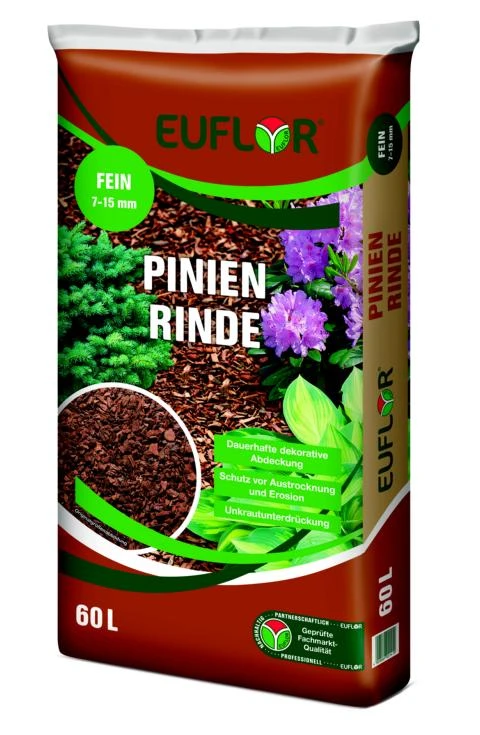 Pinienrinde ist ein ideales sehr dekoratives dauerhaftes Abdeckmaterial aus naturbelassener Pinienrinde. Sie eignet sich hervorragend zur Abdeckung für Flächen im Ziergarten, auf Gräbern und für Wege im Garten. Als dekorative Abdeckung bei Kübelpflanzen sorgt die Pinienrinde für mediterranes Flair. Die Pinienrinde verringert die Verdunstung, reduziert den Unkrautaufwuchs und schützt nachhaltig den Boden vor Erosion.