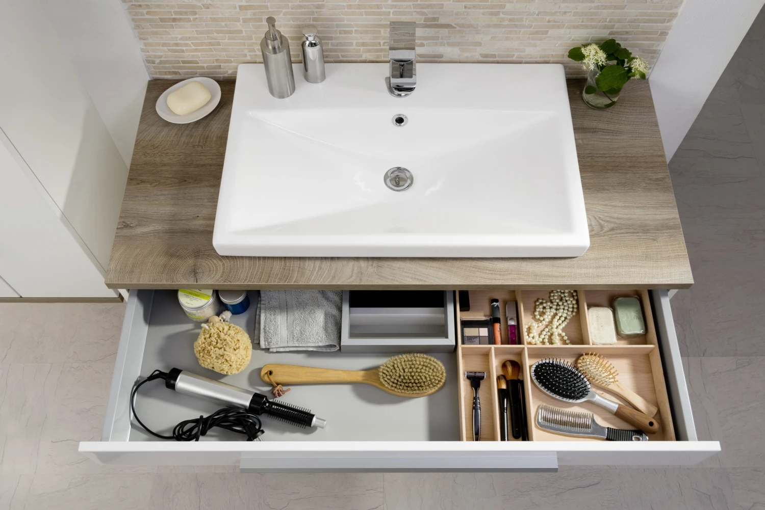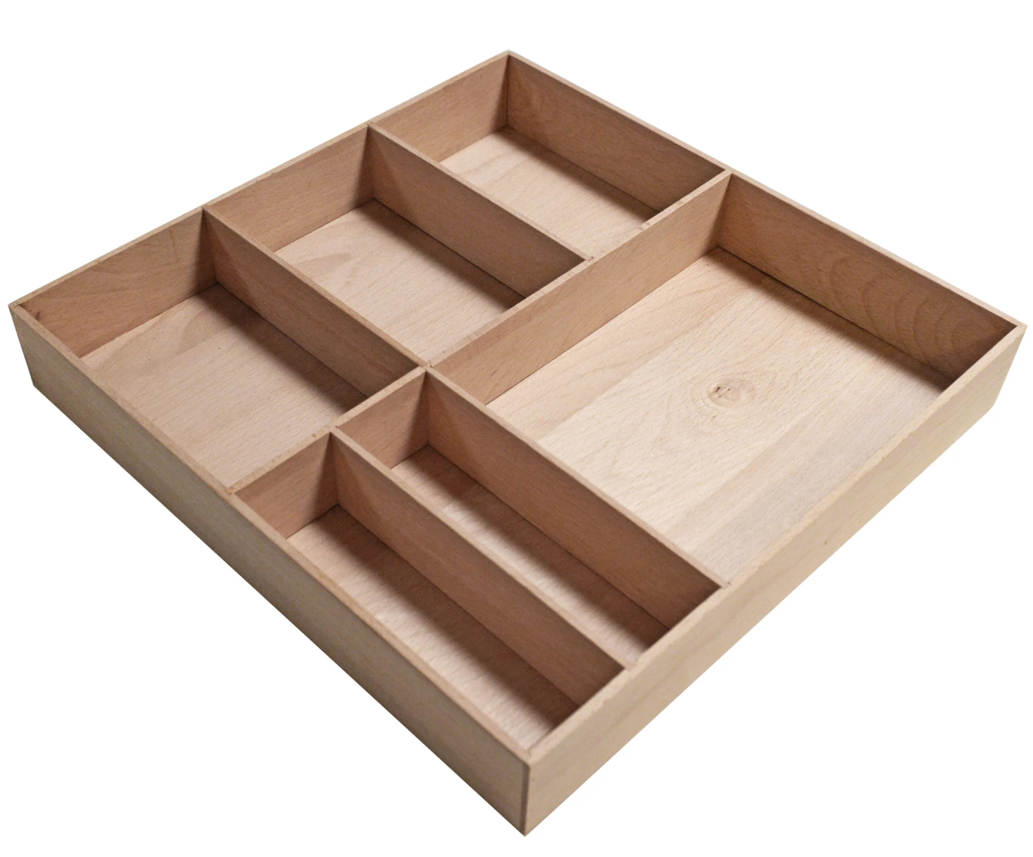 FACKELMANN 80010 Schubladen-Box, B38xH4,5xT37 cm, 6 Fächer, aus hochwertigem Buchenholz, u.a. passend für die obere Schublade der STANFORD Waschtischunterbauschränke 80013, 80017, 80023, 80027. Ordnung im Schub, variabel einsetzbar, vielseitig kombinierbar