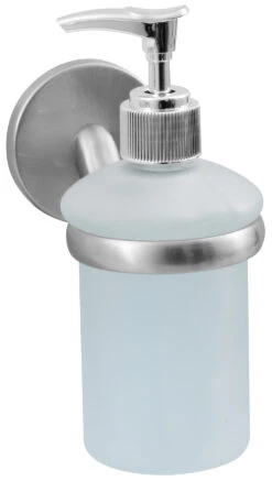 Fackelmann Fusion Seifenspender, B 7 x H 16 x T 12 cm, Glasbehälter matt, Halter chrom glänzend, inklusive Befestigungsmaterial zum Bohren