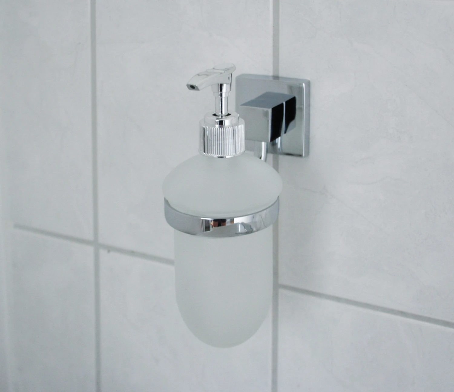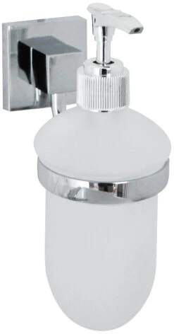 FACKELMANN MARE Seifenspender, B7xH17xT11 cm, Glasbehälter matt, Halter chrom glänzend, inklusive Befestigungsmaterial zum Bohren