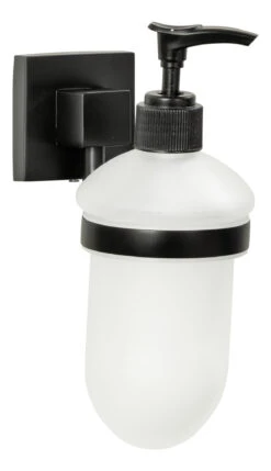 Fackelmann New York Seifenspender, B 7 x H 17 x T 11 cm, Glasbehälter matt, Halter schwarz matt, inklusive Befestigungsmaterial zum Bohren.