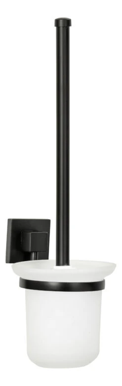 Fackelmann New York Toilettenbürste+Halter, B 11,5 x H 38 x T 15 cm, Glasbehälter matt, Halter + Bürste schwarz matt, inklusive Befestigungsmaterial zum Bohren.