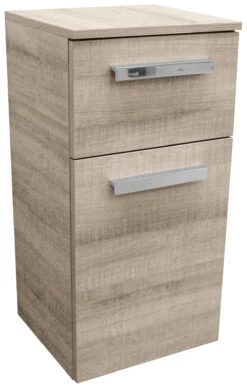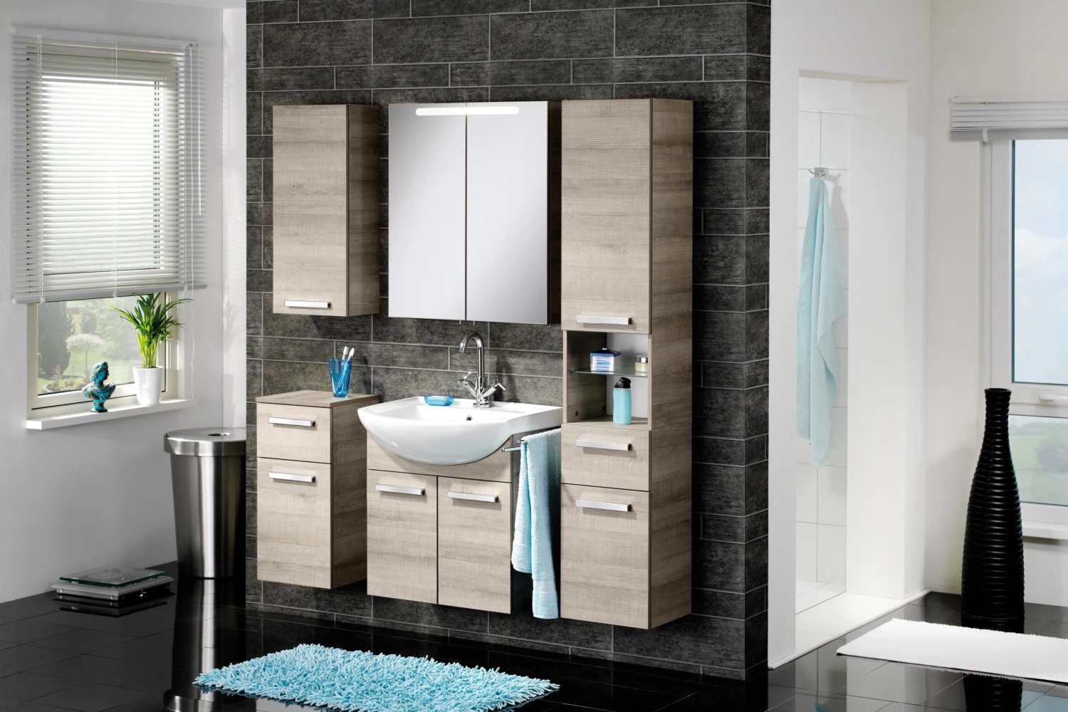 FACKELMANN A-VERO 82532 Unterschrank, B35xH69xT32 cm, Korpus + Front Graueiche-Optik, 1 Tür Anschlag wählbar, gedämpfte Scharniere, 1 Schublade mit Softclose, 1 Glaseinlegeboden, hängend, zerlegt zur Selbstmontage, wasserfeste quellsichere Verleimung. Die authentischen Natürlichkeit des Holzdekors Graueiche-Optik verleiht der Serie A-VERO eine individuelle Note. Natürlich ist auch klassisches Hochglanz-Weiß als Front erhältlich. A-VERO – ein zerlegtes Badmöbelprogramm zur preisgünstigen Selbstmontage Made in Germany