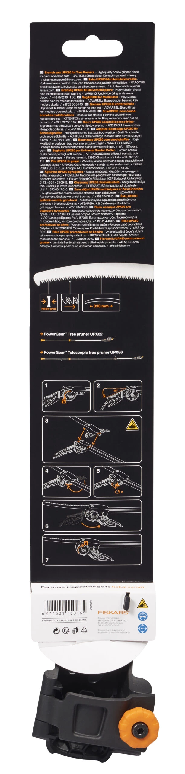 Lieferumfang: 1x Fiskars Adapter-Baumsäge, Länge: 47 cm, Gewicht: 233 g, Material: Gehärteter Stahl/Glasfaserverstärkter Kunststoff, Farbe: Schwarz/Silber, 1023633