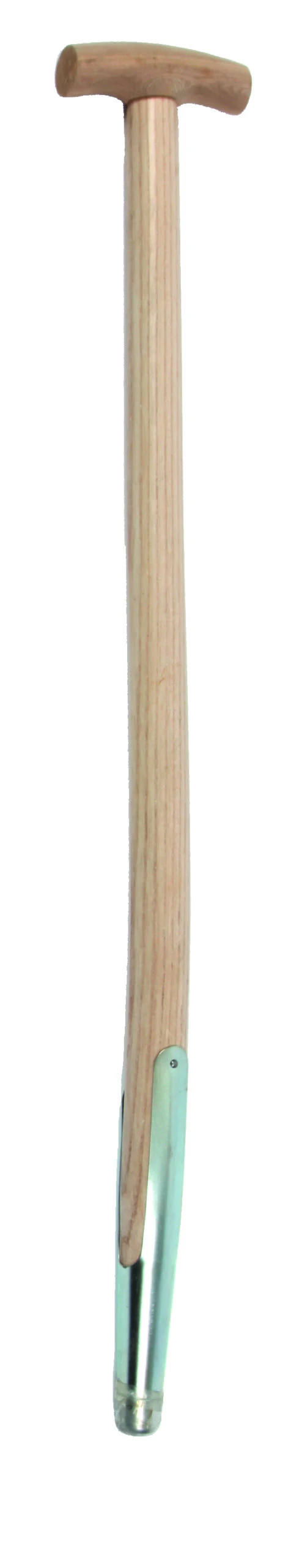 unbehandeltes Eschenholz, gebogen, gespitzt, mit T-Griff, Metall-Schienenzwinge/Kappe, Länge 850 mm, Ø 36 mm, fein geschliffen