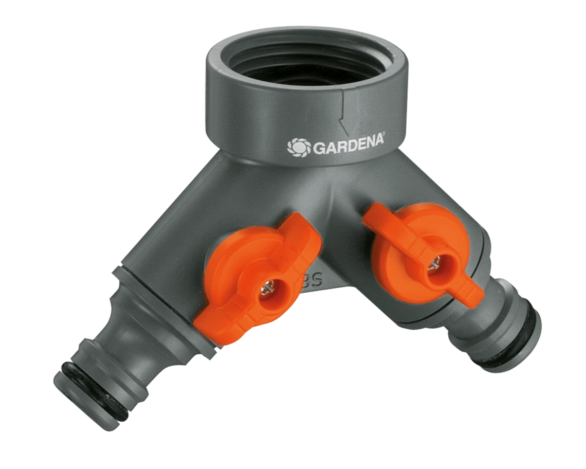 Zum Betrieb zweier Anschlussgeräte. 2 stufenlos regulierbare Ausgänge. Für 26,5 mm (G 3/4)-Wasserhahn mit 33,3 mm (G 1)-Gewinde.
