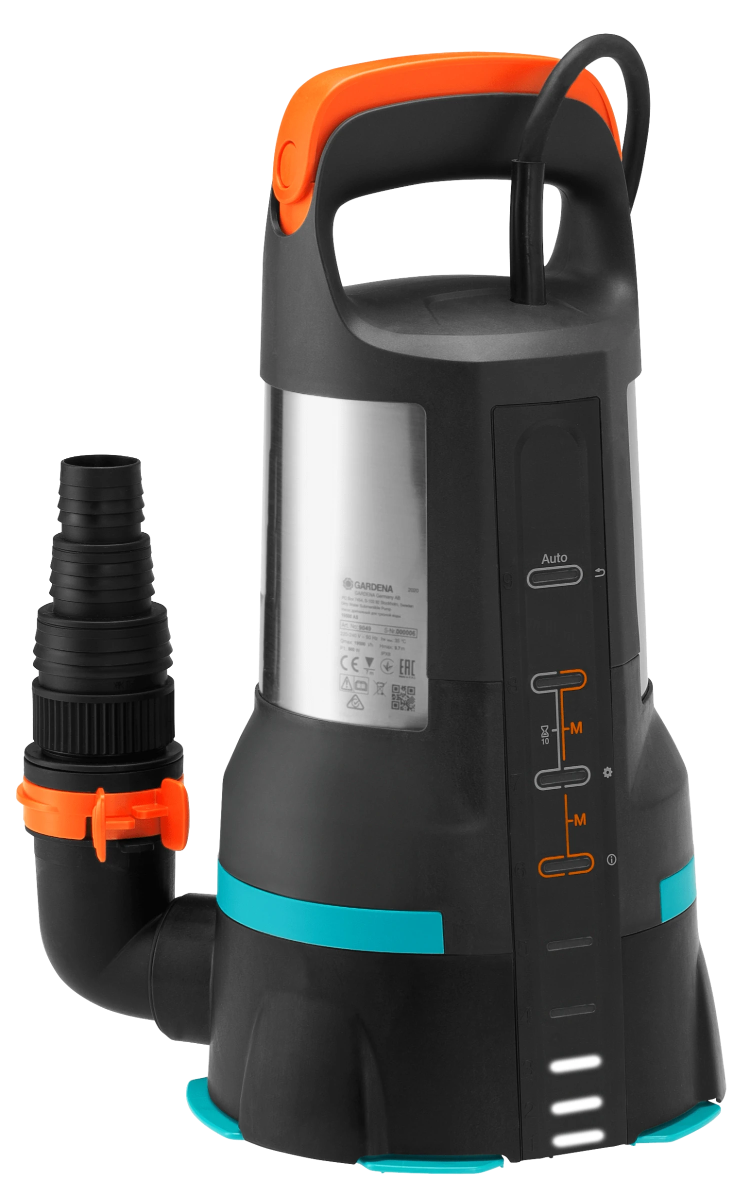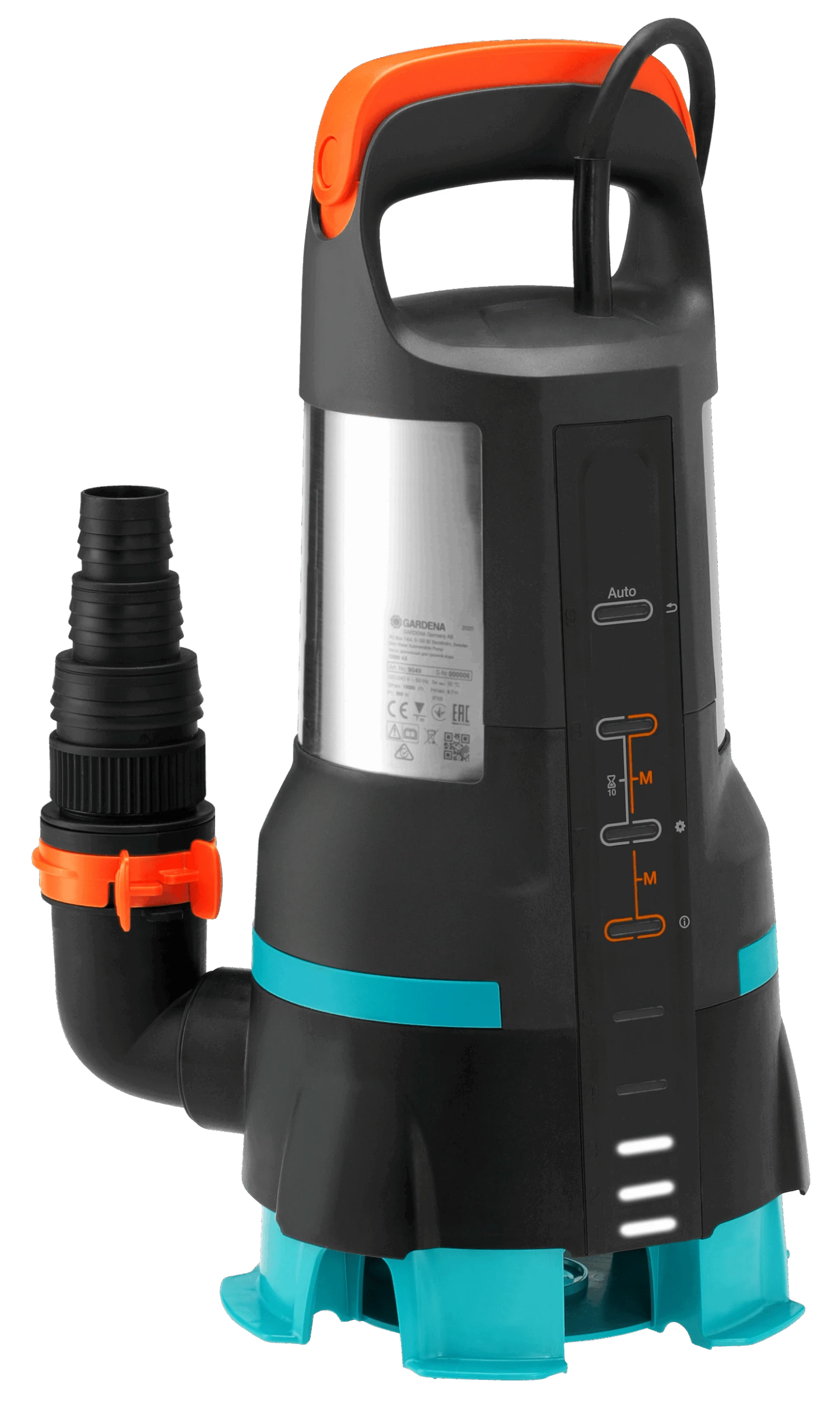 GARDENA präsentiert Dir mit der Klar-/Schmutzwasser-Tauchpumpe 19500 Aquasensor eine neue Generation von Tauchpumpen mit hoher Leistung bei geringem Energieverbrauch. Ob Du Deinen Gartenteich auspumpen und reinigen möchtest, eine von Niederschlägen überflutete Baugrube entleeren oder Deinen Wäschekeller nach einem Rohrbruch von Wasser befreien musst – mit dieser innovativen Kombipumpe kannst Du sowohl klares als auch verschmutztes Wasser mühelos aus- und umpumpen. Ihr Motor leistet 860 W und bietet damit ein beeindruckendes Pumpvolumen von 19500 Litern Wasser in der Stunde. Mit einem Druck von 1,0 bar und einer maximalen Förderhöhe von 10 m ist die stilvolle 2in1-Pumpe mit Edelstahlelementen besonders effizient. Die Flachabsaugung des Klarwasser-Modus kann klares oder nur leicht verschmutztes Wasser bis auf 1 mm absaugen, sodass zum Beispiel ein Kellerraum im Anschluss ganz einfach trockengewischt werden kann. Bei Wasser mit Schmutzpartikeln von bis zu 35 mm wird die Kombi-Tauchpumpe durch ein Umschalten des Betriebsmodus zur Schmutzwasser-Tauchpumpe. Diese ist zum Beispiel ideal für die Entwässerung einer vollgelaufenen Baugrube mit groben Schmutzpartikeln im Wasser. Der Wechsel zwischen dem Klar- und Schmutzwassermodus direkt am praktischen Tragegriff ist hier so bequem und leicht, dass Deine Hände und Schuhe beim Umstellen sauber und trocken bleiben. Das keramisch beschichtete Wellensystem verfügt über eine dreifache Abdichtung für zusätzliche Langlebigkeit. Ein weiteres innovatives Highlight der Pumpe ist der LED-Aquasensor, mit dem der gewünschte Wasserstand kontrolliert und justiert werden kann. Der Aquasensor ermöglicht es der Kombipumpe, in engen Schächten zu arbeiten, und bietet präzise einstellbare Ein- und Ausschalthöhen. Das Wasser kann ohne direkten Kontakt mit der Sensorik gemessen und über praktische LEDs auf dem Gerät angezeigt werden. Darüber hinaus bietet der Aquasensor eine intuitive Touch-Bedienung, einen Trockenlaufschutz, eine Verschmutzungsüberwachung sowie eine 10-Minuten-Timerfunktion. Genauso hilfreich ist das Easy-Click-Schlauchanschlusssystem. Schläuche mit einem Durchmesser von 32 mm (1 ¼“), 38 mm (1 ½“) und 50 mm (2″) können mit nur einem Klick angeschlossen werden. Der Anschluss mit einem optionalen G1 ½“-Gewinde ermöglicht ein breites Spektrum an Anschlussmöglichkeiten. So besticht diese tauchfähige Klar-/Schmutzwasserpumpe nicht nur durch ihr Aussehen, sondern vor allem durch ihre Funktionalität und ist damit ideal für alle Haus- und Gartenbesitzer mit hohen Ansprüchen. Verlasse Dich auf die mehr als 40-jährige Erfahrung von GARDENA in den Bereichen Entwässerung, Bewässerung und Hauswasserversorgung. Nach der Online-Registrierung erhältst Du zudem eine verlängerte Garantie von 5 Jahren auf dieses Produkt. Spür die Kraft einer Pumpe von GARDENA!