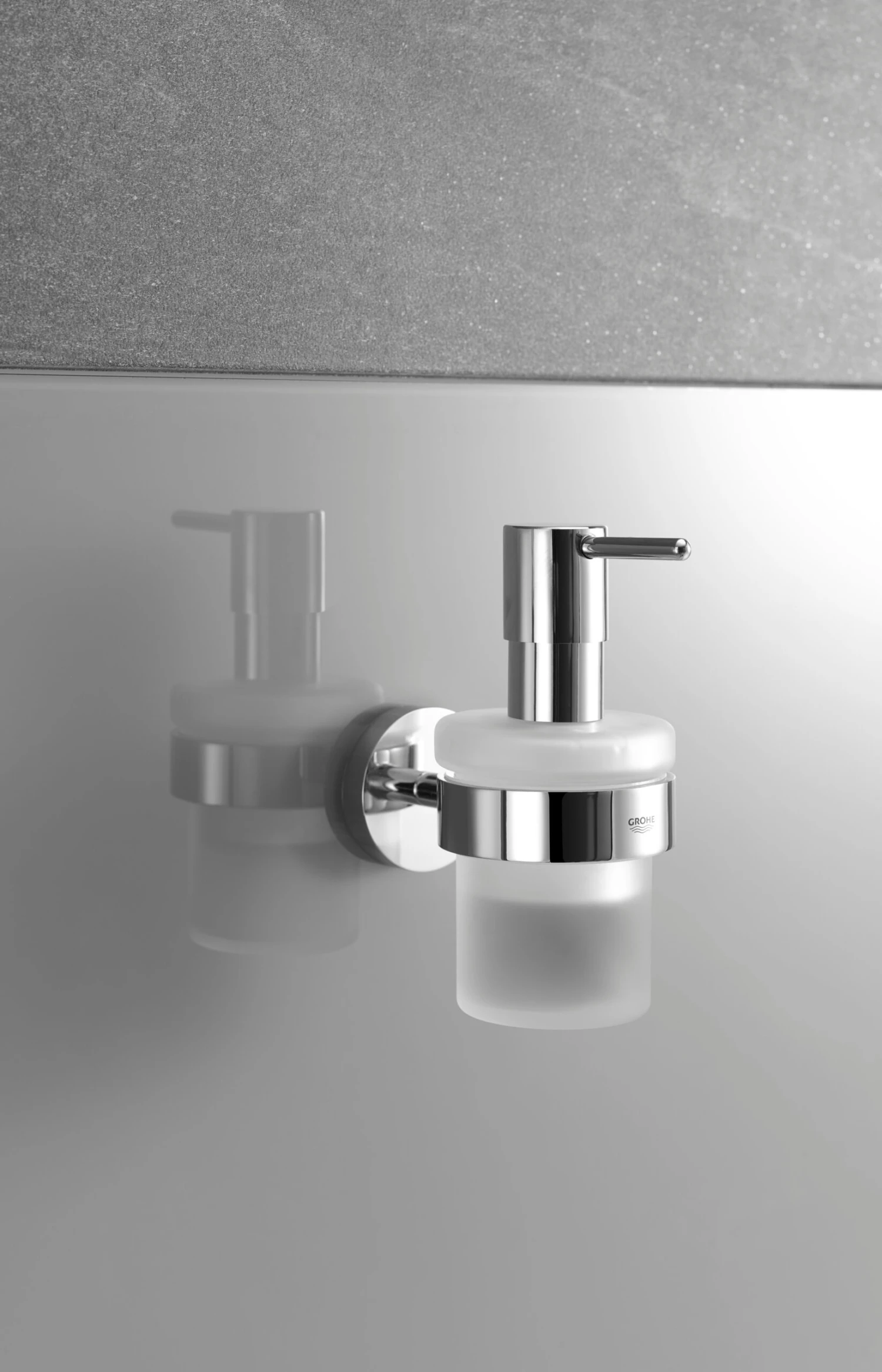 Nie war es einfacher, ein luxuriöses und stylisches Badezimmer zu schaffen. Sie mĂŒssen sich lediglich fĂŒr eine Auswahl unserer passenden GROHE Essentials Zubehörprodukte entscheiden, wie zum Beispiel dem Halter mit Seifenspender. Der Halter mit verdeckten Befestigungen verfĂŒgt ĂŒber die langlebige, pflegeleichte GROHE StarLight ChromoberflĂ€che, die auch nach Jahren nicht an Glanz verliert. AuĂerdem ist die Montage ein Leichtes befolgen Sie einfach die eindeutigen Schrittanleitungen. Sehen Sie sich auch die anderen Produkte unserer umfangreichen Kollektion an, wie zum Beispiel den Bademantelhaken, die ToilettenbĂŒrstengarnitur, den Toilettenpapierhalter und zahlreiche Handtuchhalter und Wannengriffe. Wenn Sie es noch bequemer wĂŒnschen, empfehlen wir eines unserer groĂartigen Komplettsets. GROHE Essentials Zubehör prĂ€zise Handwerkskunst, hochwertigste Materialien und zeitloses Design. Der elegante letzte Schliff fĂŒr alle Badezimmer. Material: Glas / Metall FĂŒllmenge 160 ml bestehend aus: Halter (40 369) Seifenspender (40 394) Verdeckte Befestigung GROHE StarLight OberflĂ€che geeignet zum Bohren (inklusive Schrauben und DĂŒbel) oder Kleben (bitte Kleber 40 915 000 separat bestellen)