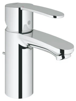 Einlochmontage Bedienungshebel aus Metall GROHE SilkMove 35 mm Keramikkartusche variabel einstellbare Mengenbegrenzung einstellbare Mindestmenge 2,5 l/min GROHE StarLight Oberfläche GROHE EcoJoy 5,7 l/min SpeedClean Mousseur Zugstangen-Ablaufgarnitur 1 1/4″ flexible Anschlussschläuche Sonderzubehör: Temperaturbegrenzer 46 375