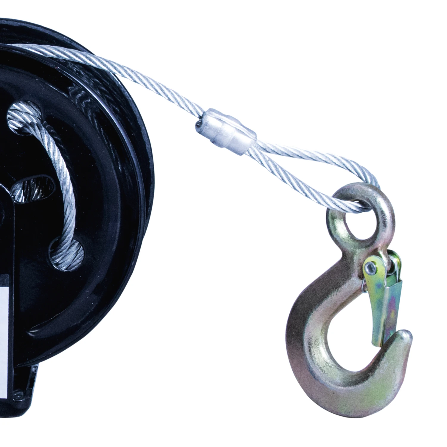Handseilwinde zum horizontalen Ziehen von Lasten. In verschiedensten Bereichen stromunabhängig einsetzbar wie z.B. in der Garage, im Garten, auf Anhängern oder in der Forst- und Landwirtschaft.