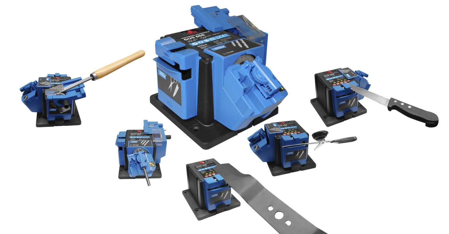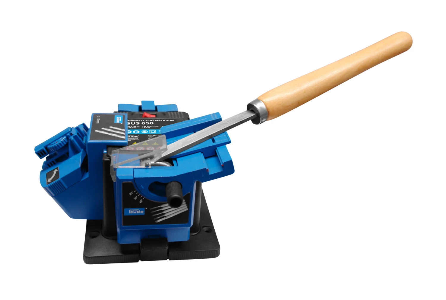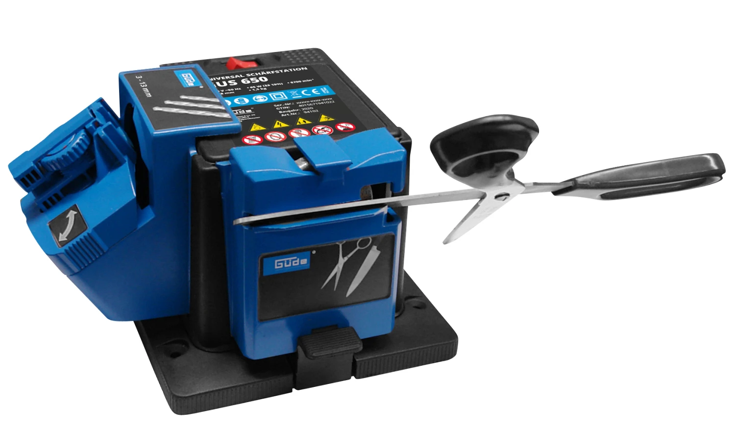 Unsere Universal Schärfstation GUS 650 ist ein wahrer „Alleskönner“. Mit Ihr können Sie problemlos Messer jeglicher Art, Bohrer, Scheren, Reben- und Astscheren, Sensen, Spaten, Rasenmähermesser, Äxte, Schraubendreher, Spachtel, Hobelmesser und Meißel schärfen. Mit der Präzisions-Bohrerschleifvorrichtung können Sie Bohrer mit einem Durchmesser von 3-13 mm schärfen unabhängig um was für einen Bohrer es sich handelt. Der diamantbesetzte, nahezu unkaputtbare Schleifstein sorgt im Zusammenspiel mit dem robusten und sehr laufruhigen 65 Watt Motor für tolle Schärfergebnisse. Durch das leichte Gewicht und die kompakte Bauform können Sie die Station überall mitnehmen und ganz einfach verstauen.