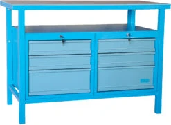 - pulverbeschichtet: RAL 5015 (Rahmenteile) RAL 7001 (Türen/Schubladen)