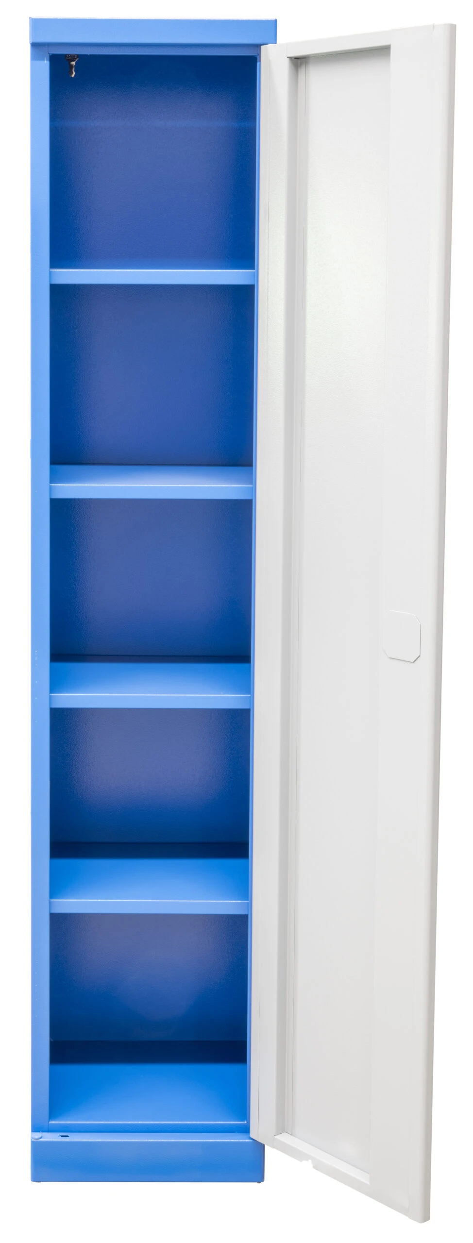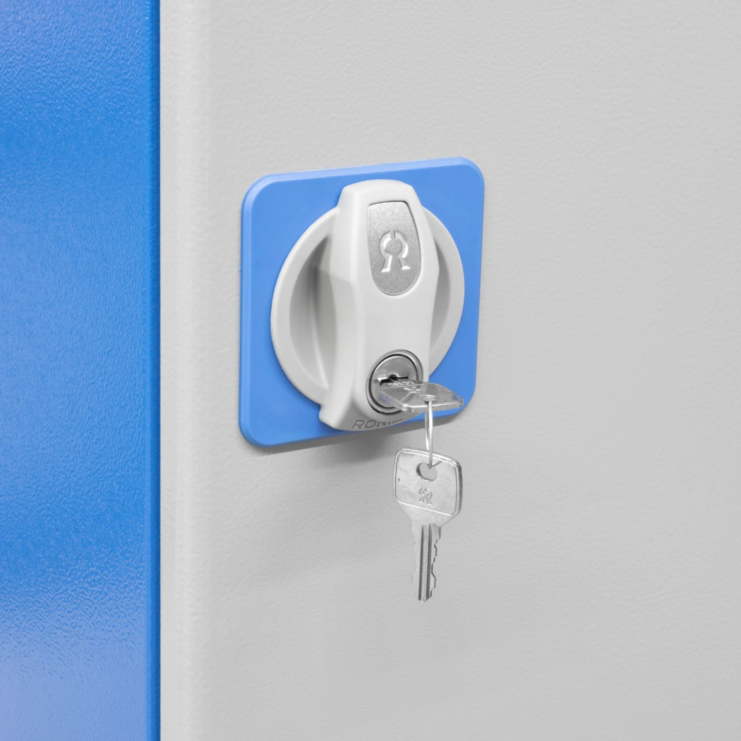 - Pulverbeschichtet: RAL 5015 (Korpus) und RAL 7001 (Tür)