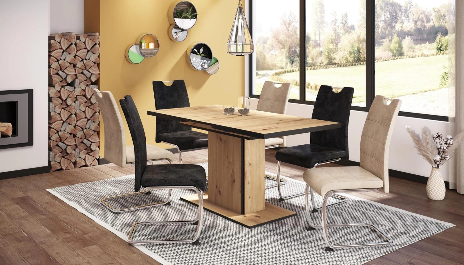 - Artisan Eiche Nachbildung – Tischkanten in Schwarz,