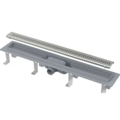 Bodenablaufrinne komplett mit Edelstahl Rost 950mm für bodenebene, begehbare Duschen in Badezimmer, Duschräumen, Saunen, etc. mit sehr geringe Einbauhöhe – nur 62 mm