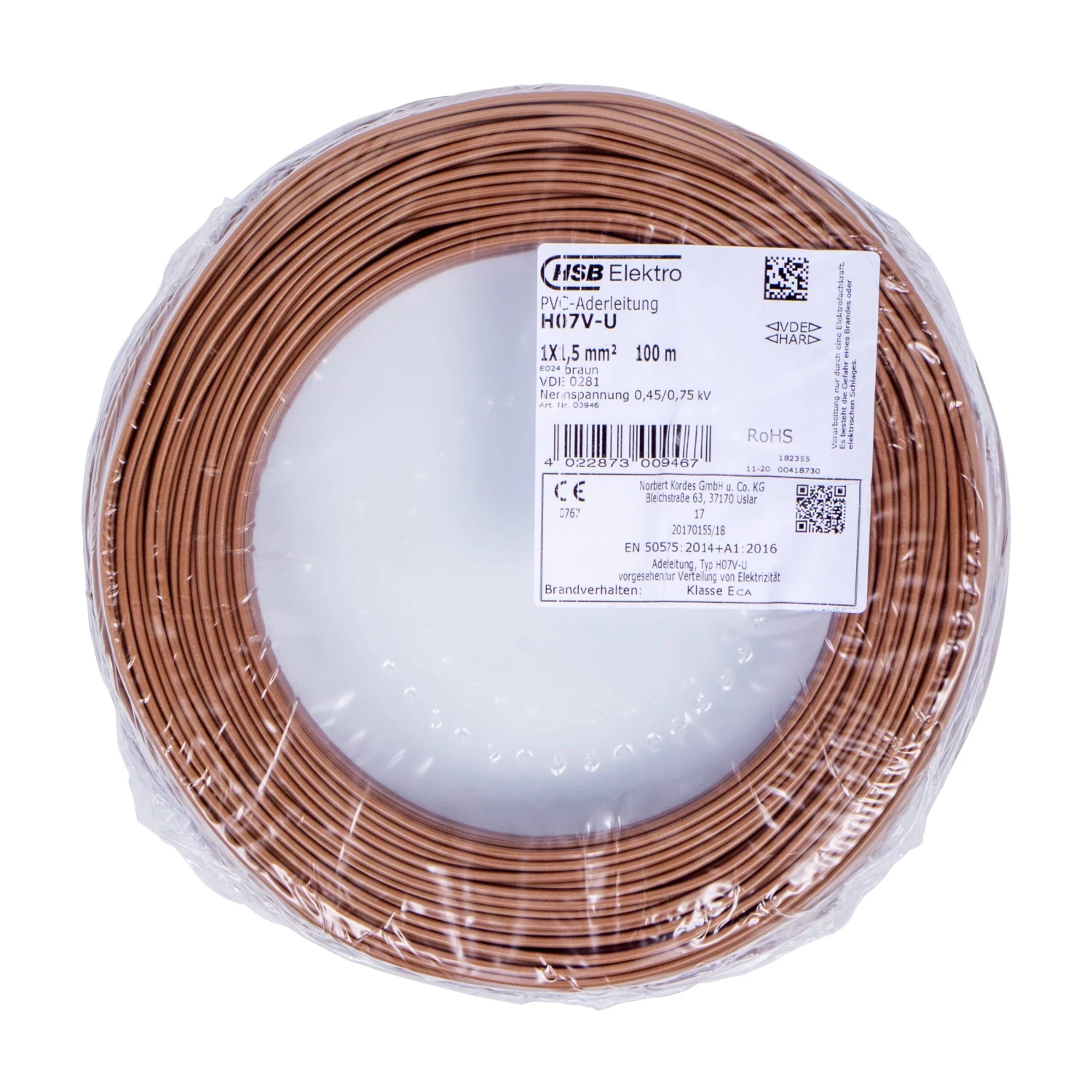 Aderleitung H07V-U 1,5mm², 100m, braun