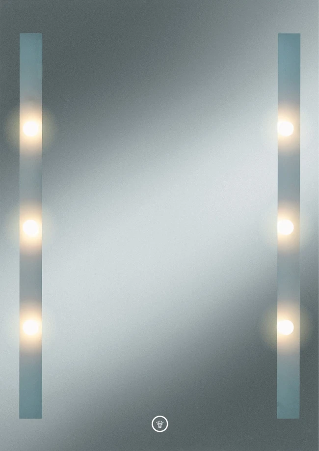 Lichtspiegel ; Maße (BxH): 50,0 cm x 70,0 cm ; Beleuchtung: LED-Beleuchtung, 360 Lumen, 4 Watt, 3.000 Kelvin Warm-Weiß, Sensorschalter