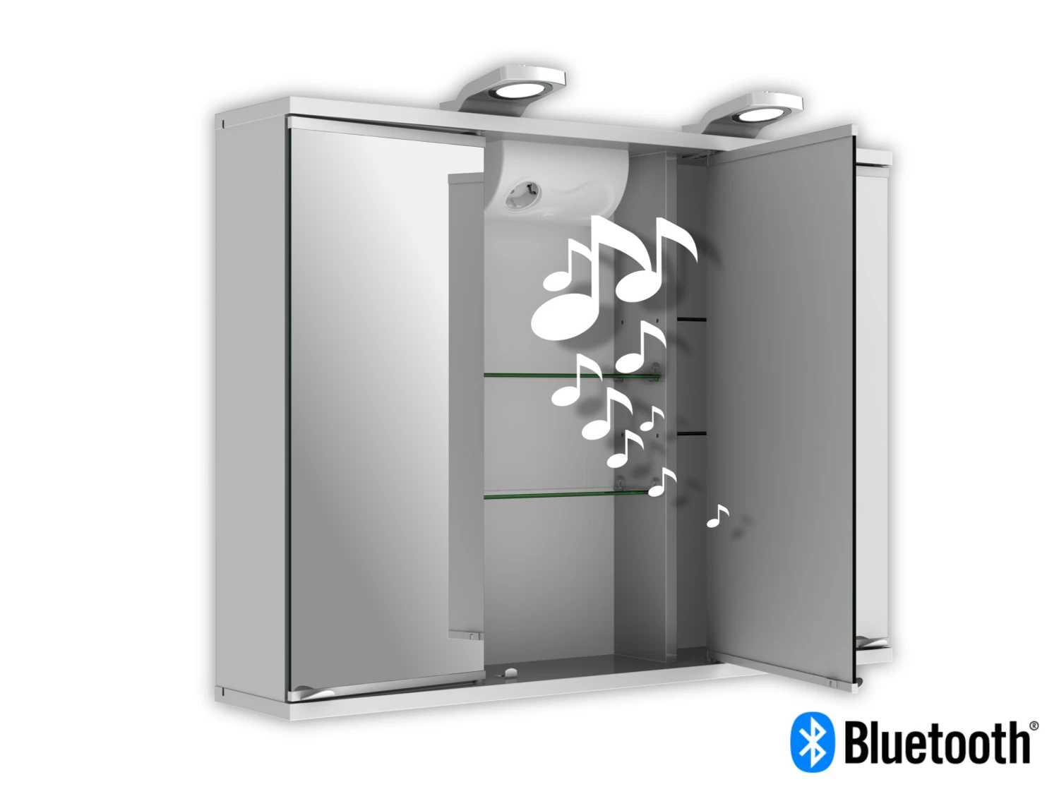 MDF / Holz, weiß, 3 Spiegeltüren aus Kristallglas mit 3-D Spiegeleffekt,