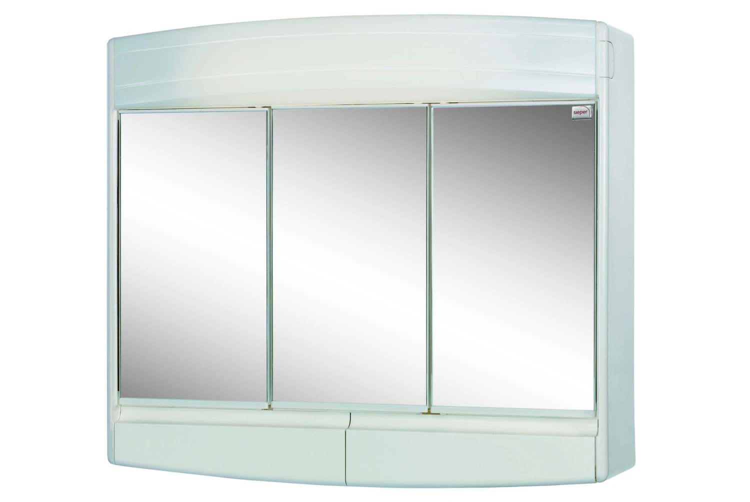 Material: Kunststoff ; Farbe: weiß; Maße (BxHxT): 60,0 cm x 53,0 cm x 18,0 cm ; Beleuchtung: 2 x LED-Lampen, 1.000 Lumen