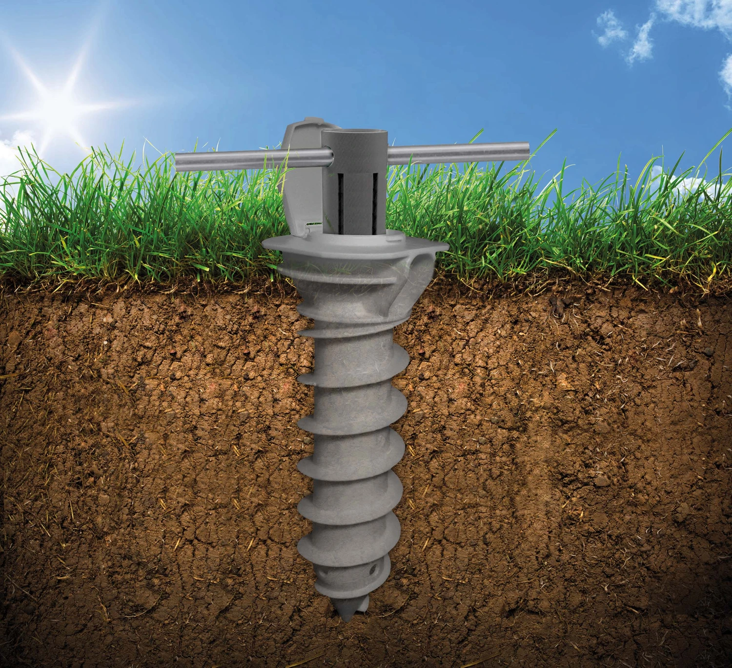 zum Eindrehen oder Betonieren, passen für Rohre DM 55, 50, 40mm, inkl. Eindrehwerkzeug, für bodenebenes Eindrehen ohne Stoperfalle