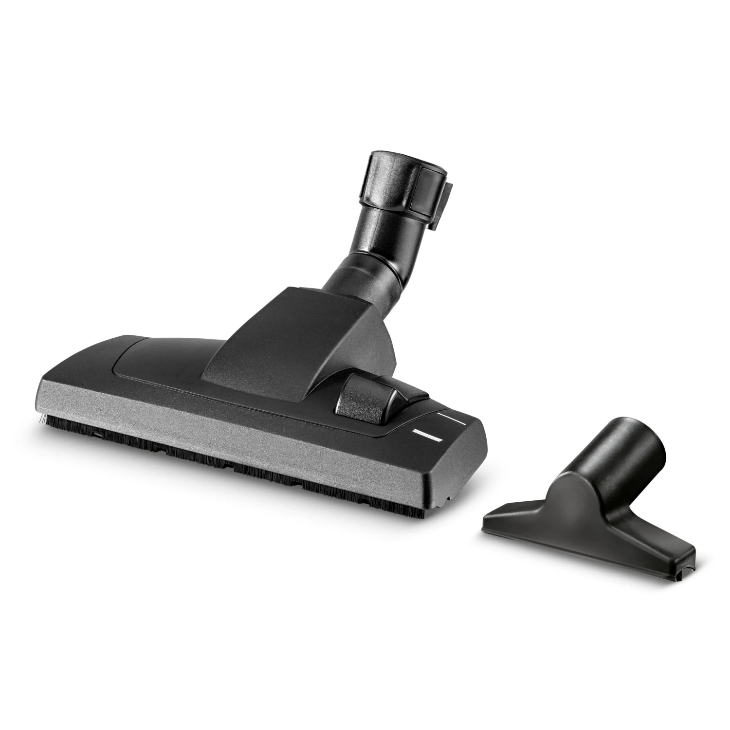 Mit der umschaltbaren Trockensaugdüse und der Polsterdüse bietet das Haushaltsset das ideale Zubehör für viele haushaltsübliche Reinigungsaufgaben. Die per Fußschalter umschaltbare Bodendüse eignet sich sowohl für Teppichböden als auch für Hartflächen. Und die praktische Polsterdüse mit Bürststreifen ermöglicht das schonende Absaugen von Polstermöbeln und Polstern. / Menge: 2 ; Standardnennweite: 35